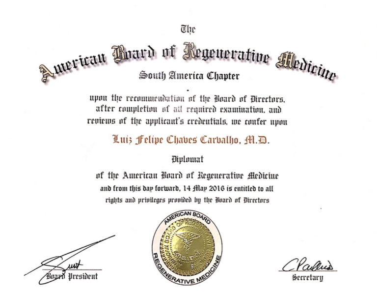 Medicina Regenerativa mediante prova realizada em 14 de maio de 2016.