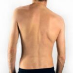 Um ombro é geralmente mais alto que o outro devido à curvatura escoliótica. Uma das escápulas pode ser mais proeminente que a outra.